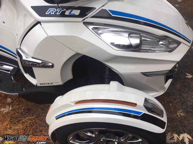 Got a great deal on a used 2014 Pearl White RT Limited that had a few Spyder films on it, but still just too much white for me! Looked at all options and decided one of the stripe kits from WrapMySpyder was the best way to go! Had some questions on colors available, wanted some extra pieces, and had other questions - and Pete and the guys responded very quickly to all questions, and were very helpful. Decided on Black primary and red secondary Break Stripe kit, followed the easy to follow install instructions, and WOW! My Spider looks absolutely awesome now, and VERY happy with the difference the striping from WrapMySpyder has on it. Thanks to all at WrapMySpyder!