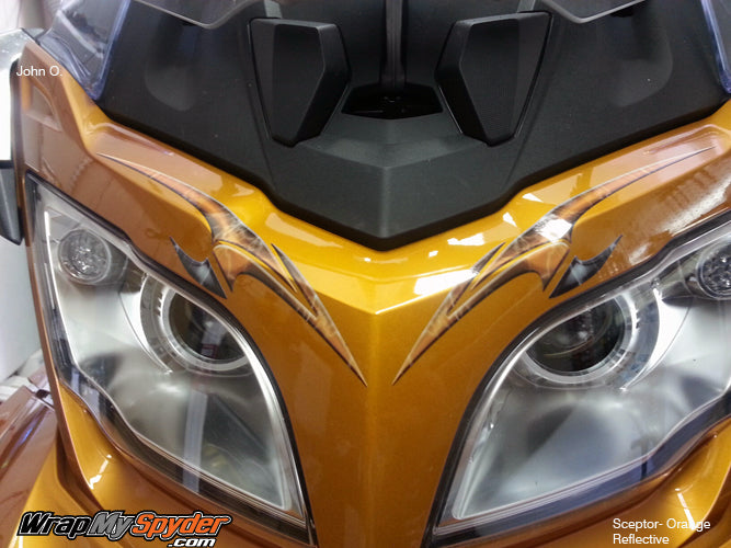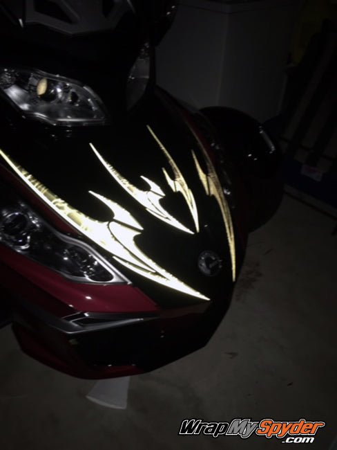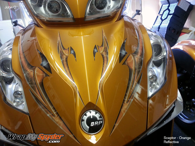 First let me say I am totally impressed with Pete from wrapmyspyder.com. He is such a great person to work with as far as service and ideas. I ordered the SCEPTOR kit for my 2014 Cognac spyder RT and I was shocked to see how great the bike looks. He also gives you some extra pieces so you can express yourself and make you bike a one of a kind the way you lay it out. The kit installed very easy and all you need to do is just take your time and you will not believe the results you end up with. I got my kit in reflective and can't wait to get some night shots of it, as far as I am concerned you can never go wrong with being seen day or night. I highly recommend Pete and his company for anyone that wants a great looking bike.
